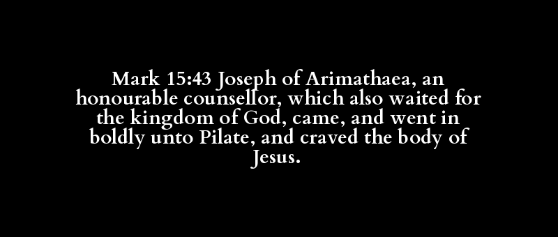 Mark 15:43 Joseph of Arimathaea, an honourable counsellor, which also waited for the kingdom of God, came, and went in boldly unto Pilate, and craved the body of Jesus.