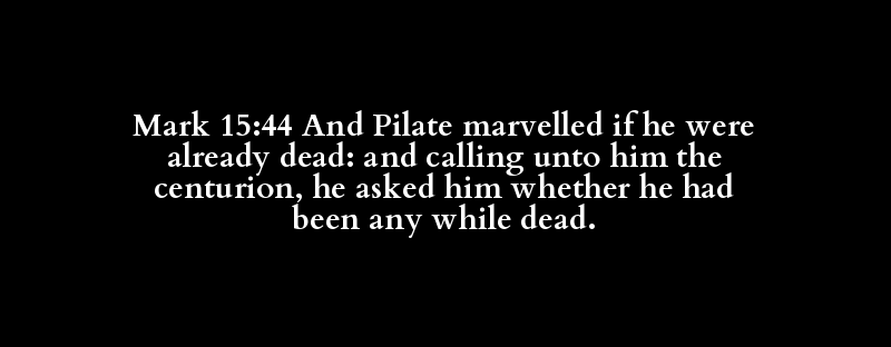 Mark 15:44 And Pilate marvelled if he were already dead: and calling unto him the centurion, he asked him whether he had been any while dead.