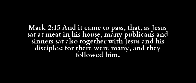 | [kai] | [ginomai] | [en] | [autos] | [katakeimai] | [en] | [autos] | [oikia] | [polus] | [telones] | [kai] | [hamartolos] | [sunanakeimai] | [kai] | [sunanakeimai] | [Iesous] | [kai] | [autos] | [mathetes] | [gar] | [en] | [polus] | [kai] | [akoloutheo] | [autos] |