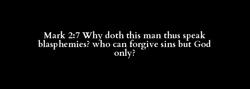 Mark 2:7 Why doth this man thus speak blasphemies? who can forgive sins but God only?