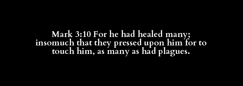 Mark 3:10 For he had healed many; insomuch that they pressed upon him for to touch him, as many as had plagues.