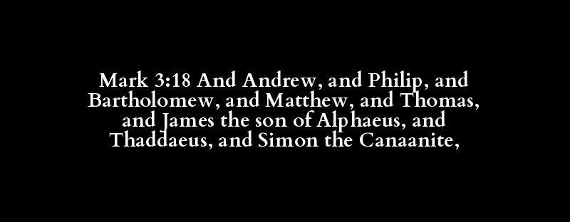 | and, also, both, but, even, for, if, o.. | Andrew | and, also, both, but, even, for, if, o.. | Philip | and, also, both, but, even, for, if, o.. | Bartholomeus | and, also, both, but, even, for, if, o.. | Matthew | and, also, both, but, even, for, if, o.. | Thomas | and, also, both, but, even, for, if, o.. | James | the, this, that, one, he, she, it, etc | Alpheus | and, also, both, but, even, for, if, o.. | Thaddaeus | and, also, both, but, even, for, if, o.. | Simon | Canaanite (by mistake for a derivative.. |