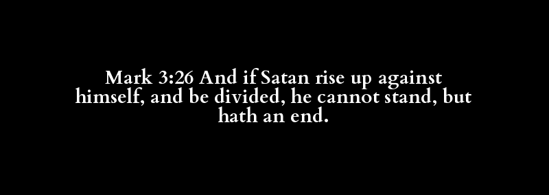 Mark 3:26 And if Satan rise up against himself, and be divided, he cannot stand, but hath an end.