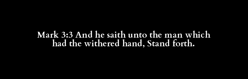 Mark 3:3 And he saith unto the man which had the withered hand, Stand forth.