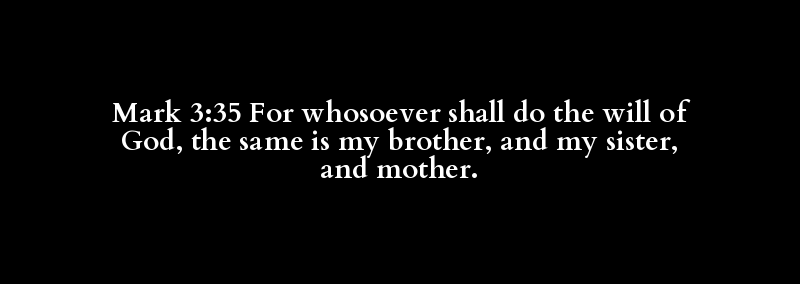 Mark 3:35 For whosoever shall do the will of God, the same is my brother, and my sister, and mother.
