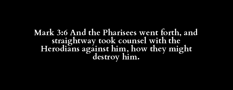 Mark 3:6 And the Pharisees went forth, and straightway took counsel with the Herodians against him, how they might destroy him.