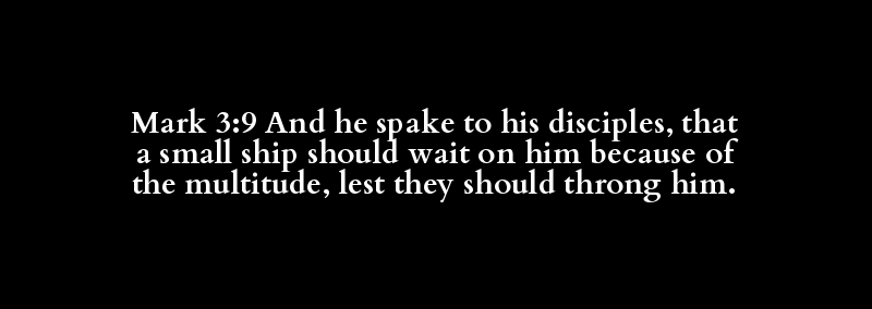 Mark 3:9 And he spake to his disciples, that a small ship should wait on him because of the multitude, lest they should throng him.