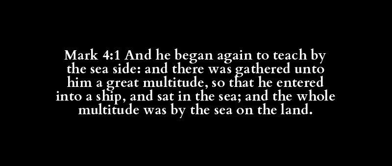 Mark 4:1 And he began again to teach by the sea side: and there was gathered unto him a great multitude, so that he entered into a ship, and sat in the sea; and the whole multitude was by the sea on the land.