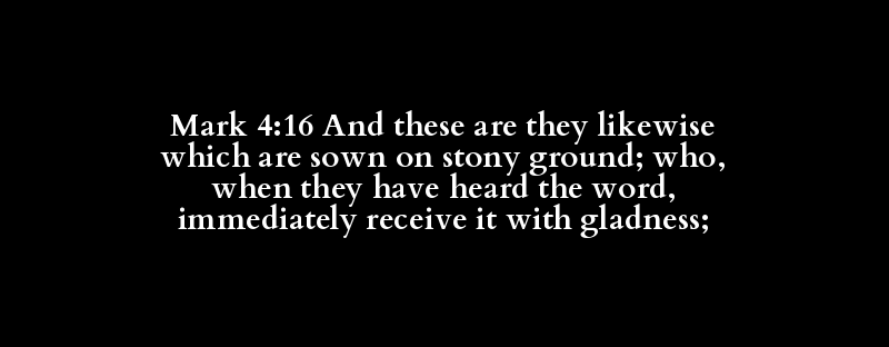 Mark 4:16 And these are they likewise which are sown on stony ground; who, when they have heard the word, immediately receive it with gladness;