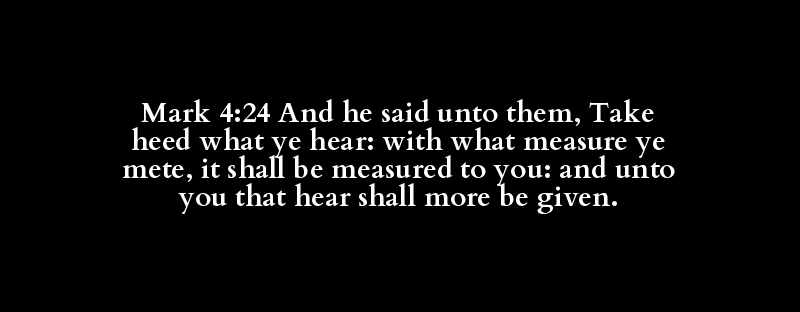 Mark 4:24 And he said unto them, Take heed what ye hear: with what measure ye mete, it shall be measured to you: and unto you that hear shall more be given.