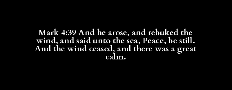 Mark 4:39 And he arose, and rebuked the wind, and said unto the sea, Peace, be still. And the wind ceased, and there was a great calm.