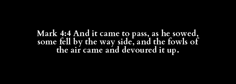 Mark 4:4 And it came to pass, as he sowed, some fell by the way side, and the fowls of the air came and devoured it up.
