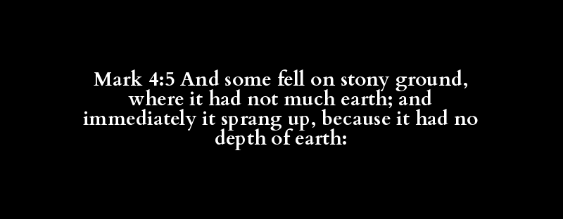 Mark 4:5 And some fell on stony ground, where it had not much earth; and immediately it sprang up, because it had no depth of earth: