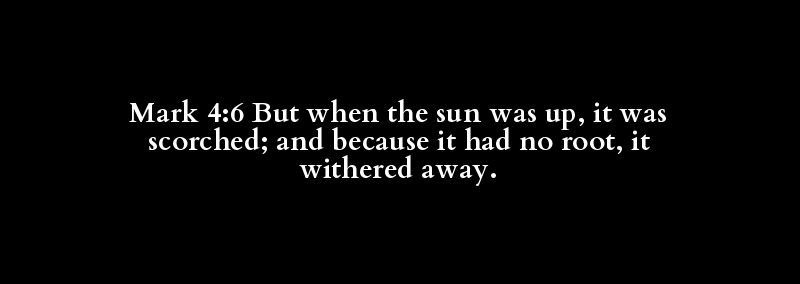 Mark 4:6 But when the sun was up, it was scorched; and because it had no root, it withered away.