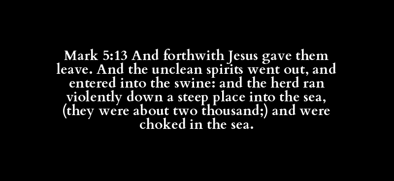 | καί | εὐθέως | Ἰησοῦς | ἐπιτρέπω | αὐτός | ἐπιτρέπω | καί | ἀκάθαρτος | πνεῦμα | ἐξέρχομαι | εἰσέρχομαι | εἰς | χοῖρος | καί | ἀγέλη | ὁρμάω | κατά | κρημνός | εἰς | θάλασσα | δέ | ἦν | ὡς | δισχίλιοι | καί | πνίγω | ἐν | θάλασσα |