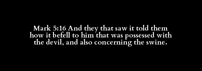 Mark 5:16 And they that saw it told them how it befell to him that was possessed with the devil, and also concerning the swine.