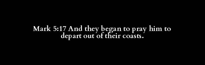Mark 5:17 And they began to pray him to depart out of their coasts.