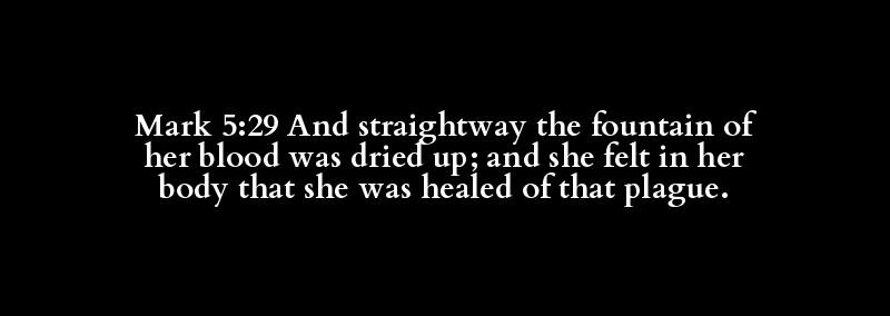 Mark 5:29 And straightway the fountain of her blood was dried up; and she felt in her body that she was healed of that plague.