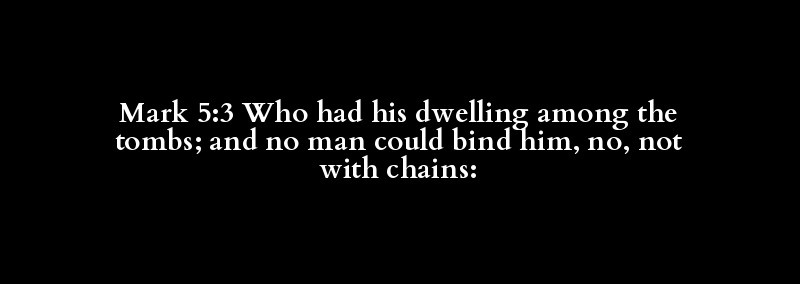 Mark 5:3 Who had his dwelling among the tombs; and no man could bind him, no, not with chains: