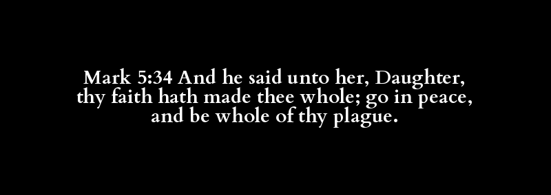 Mark 5:34 And he said unto her, Daughter, thy faith hath made thee whole; go in peace, and be whole of thy plague.