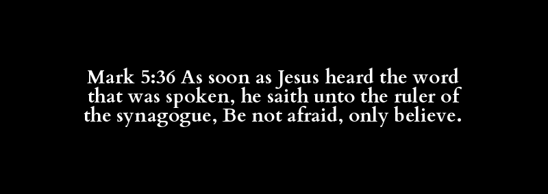 Mark 5:36 As soon as Jesus heard the word that was spoken, he saith unto the ruler of the synagogue, Be not afraid, only believe.