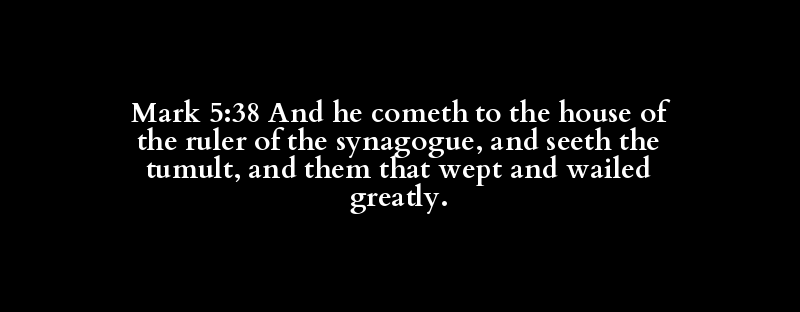 Mark 5:38 And he cometh to the house of the ruler of the synagogue, and seeth the tumult, and them that wept and wailed greatly.