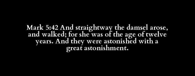 | and, also, both, but, even, for, if, o.. | anon, as soon as, forthwith, immediate.. | damsel, maid | arise, lift up, raise up (again), rise.. | and, also, both, but, even, for, if, o.. | go, be occupied with, walk (about | and, as, because (that), but, even, fo.. | agree, be, X have (+ charge of), hold.. | twelve | year | and, also, both, but, even, for, if, o.. | amaze, be (make) astonished, be beside.. | fear) exceedingly, great(-est), high,.. | be amazed, amazement, astonishment, t.. |