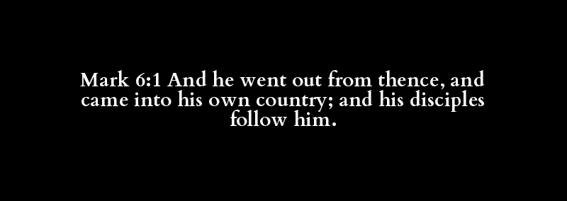 Mark 6:1 And he went out from thence, and came into his own country; and his disciples follow him.