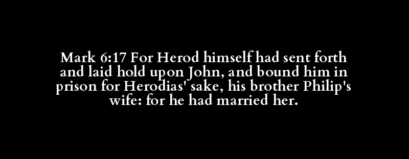 | and, as, because (that), but, even, fo.. | Herod | her, it(-self), one, the other, (mine).. | put in, send (away, forth, out), set (.. | hold (by, fast), keep, lay hand (hold).. | John | and, also, both, but, even, for, if, o.. | bind, be in bonds, knit, tie, wind | her, it(-self), one, the other, (mine).. | about, after, against, + almost, X alt.. | cage, hold, (im-)prison(-ment), ward, .. | after, always, among, at, to avoid, be.. | Herodias | after, always, among, at, to avoid, be.. | her, it(-self), one, the other, (mine).. | brother | Philip | wife, woman | as concerning that, as though, because.. | marry (a wife | her, it(-self), one, the other, (mine).. |