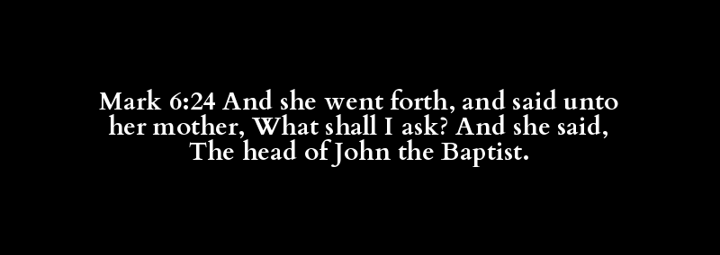Mark 6:24 And she went forth, and said unto her mother, What shall I ask? And she said, The head of John the Baptist.