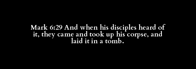 Mark 6:29 And when his disciples heard of it, they came and took up his corpse, and laid it in a tomb.