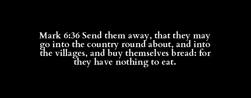 Mark 6:36 Send them away, that they may go into the country round about, and into the villages, and buy themselves bread: for they have nothing to eat.