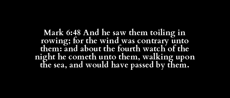 | καί | εἴδω | αὐτός | βασανίζω | ἐν | ἐλαύνω | γάρ | ἄνεμος | ἦν | ἐναντίος | αὐτός | καί | περί | τέταρτος | φυλακή | νύξ | ἔρχομαι | πρός | αὐτός | περιπατέω | ἐπί | θάλασσα | καί | θέλω | παρέρχομαι | αὐτός |