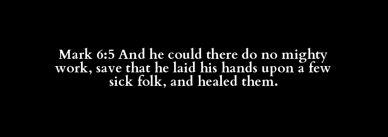 Mark 6:5 And he could there do no mighty work, save that he laid his hands upon a few sick folk, and healed them.
