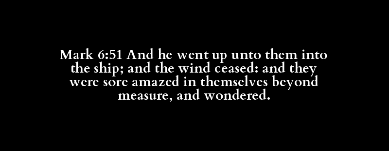 Mark 6:51 And he went up unto them into the ship; and the wind ceased: and they were sore amazed in themselves beyond measure, and wondered.