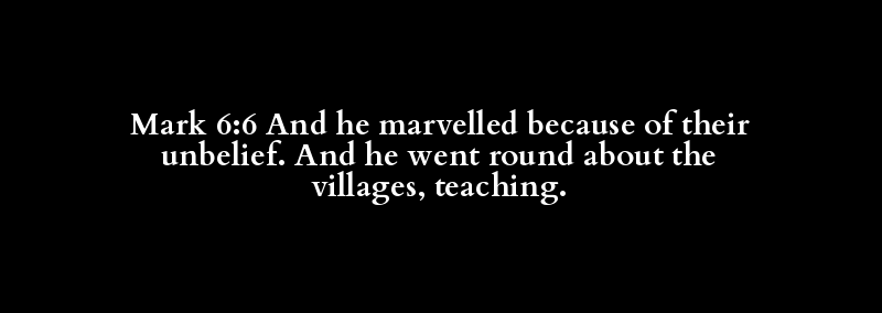 Mark 6:6 And he marvelled because of their unbelief. And he went round about the villages, teaching.
