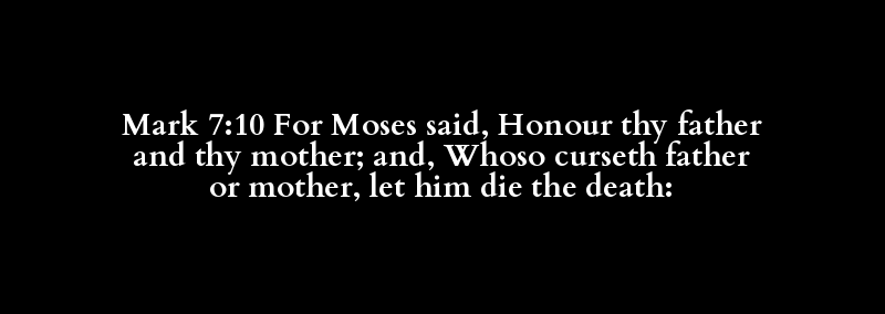 Mark 7:10 For Moses said, Honour thy father and thy mother; and, Whoso curseth father or mother, let him die the death:
