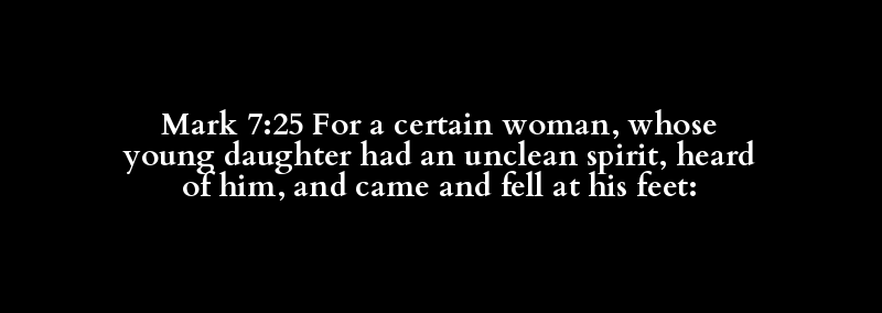 Mark 7:25 For a certain woman, whose young daughter had an unclean spirit, heard of him, and came and fell at his feet: