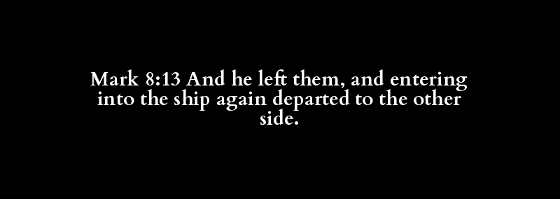 Mark 8:13 And he left them, and entering into the ship again departed to the other side.