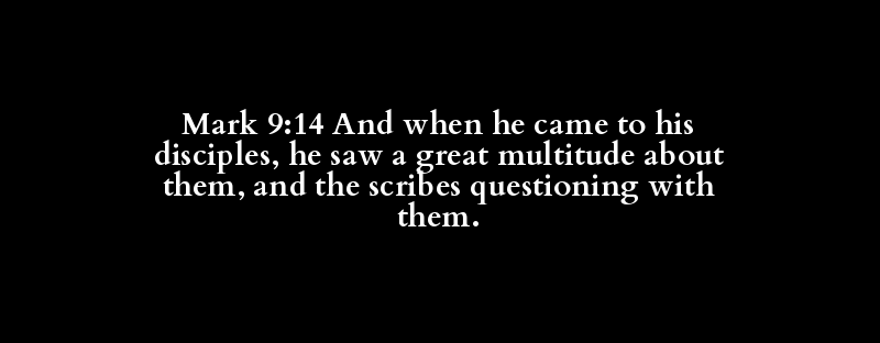 Mark 9:14 And when he came to his disciples, he saw a great multitude about them, and the scribes questioning with them.