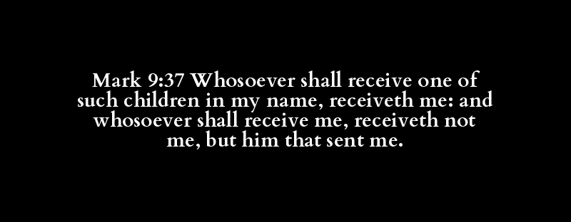 Mark 9:37 Whosoever shall receive one of such children in my name, receiveth me: and whosoever shall receive me, receiveth not me, but him that sent me.