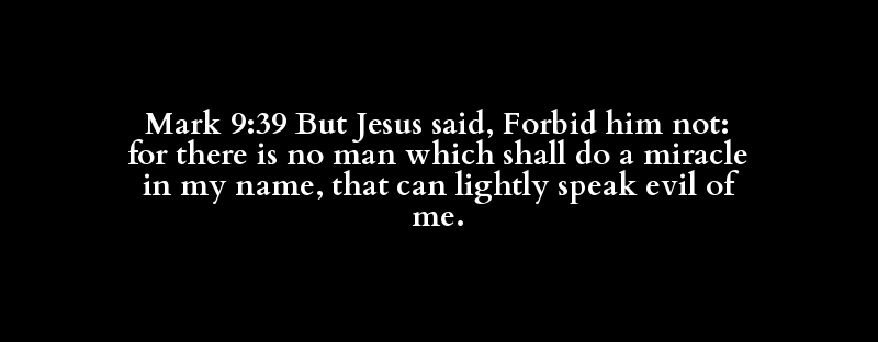 Mark 9:39 But Jesus said, Forbid him not: for there is no man which shall do a miracle in my name, that can lightly speak evil of me.