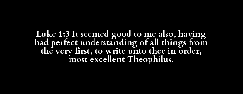Luke 1:3 It seemed good to me also, having had perfect understanding of all things from the very first, to write unto thee in order, most excellent Theophilus,
