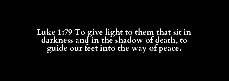 Luke 1:79 To give light to them that sit in darkness and in the shadow of death, to guide our feet into the way of peace.