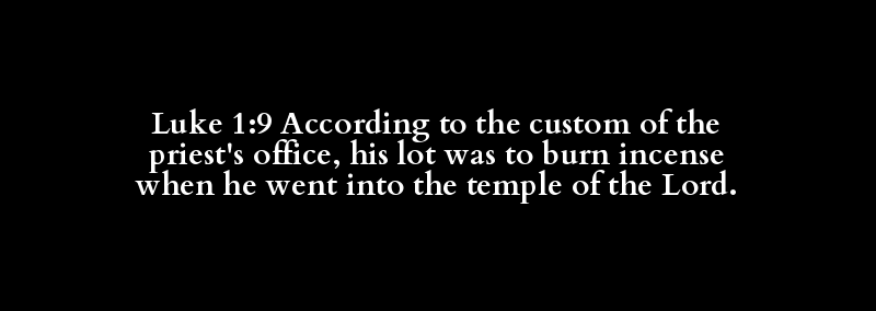 Luke 1:9 According to the custom of the priest's office, his lot was to burn incense when he went into the temple of the Lord.
