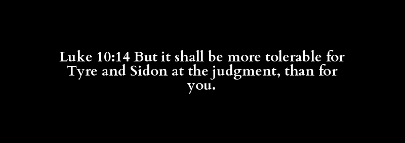 Luke 10:14 But it shall be more tolerable for Tyre and Sidon at the judgment, than for you.