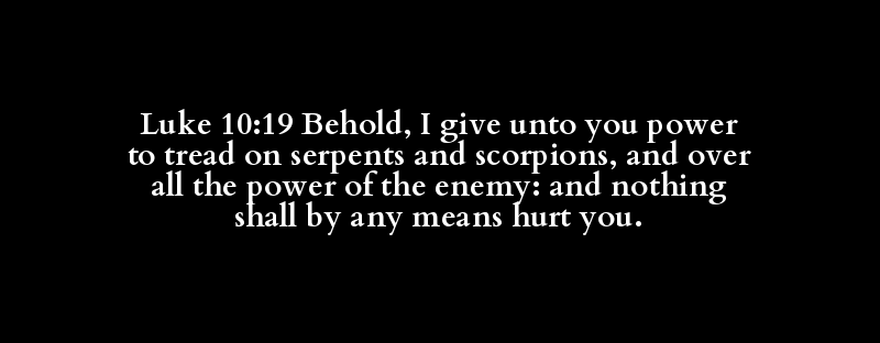 | behold, lo, see | adventure, bestow, bring forth, commit.. | ye, you, your(-selves | authority, jurisdiction, liberty, powe.. | tread (down, under foot | above, more than, (up-)on, over | serpent | and, also, both, but, even, for, if, o.. | scorpion | and, also, both, but, even, for, if, o.. | about (the times), above, after, again.. | all (manner of, means), alway(-s), any.. | ability, abundance, meaning, might(-il.. | enemy, foe | and, also, both, but, even, for, if, o.. | any (man), aught, man, neither any (th.. | hurt, injure, be an offender, be unjus.. | any more, at all, by any (no) means, n.. | hurt, injure, be an offender, be unjus.. | ye, you (+ -ward), your (+ own |