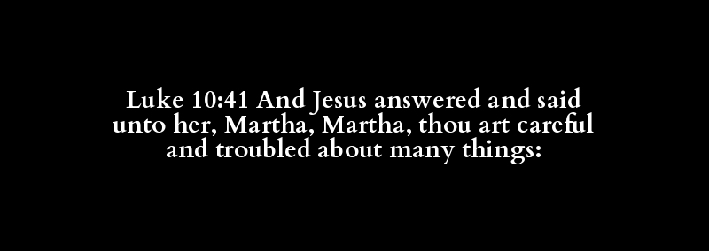 Luke 10:41 And Jesus answered and said unto her, Martha, Martha, thou art careful and troubled about many things: