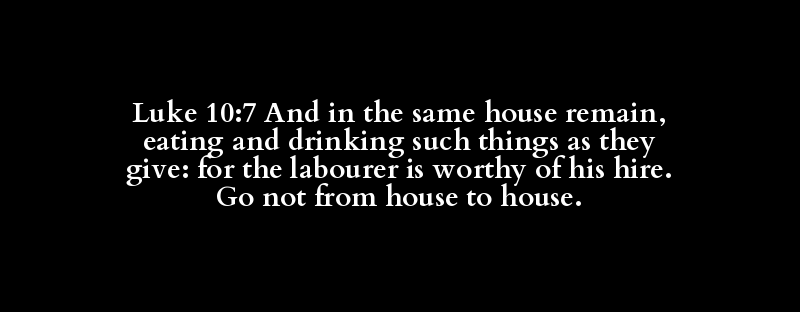 | δέ | ἐν | αὐτός | οἰκία | μένω | ἐσθίω | καί | πίνω | παρά | αὐτός | παρά | γάρ | ἐργάτης | ἐστί | ἄξιος | αὐτός | μισθός | μεταβαίνω | μή | ἐκ | οἰκία | εἰς | οἰκία |