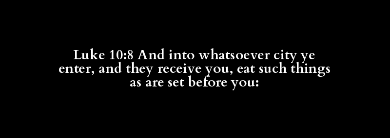 Luke 10:8 And into whatsoever city ye enter, and they receive you, eat such things as are set before you: